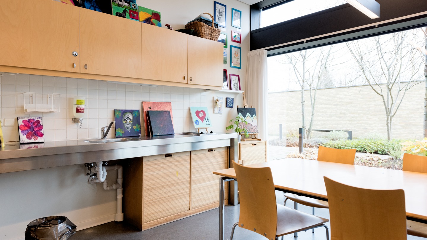 På hospitalet på Brandevej har vi motionsrum, kreativt værksted og musikrum, som patienterne kan benytte sammen med personale.