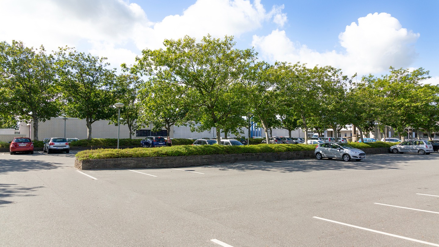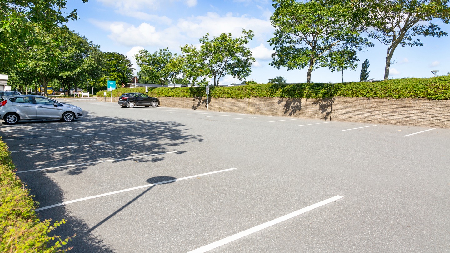 Parkeringspladsen til venstre for hovedindgangen
