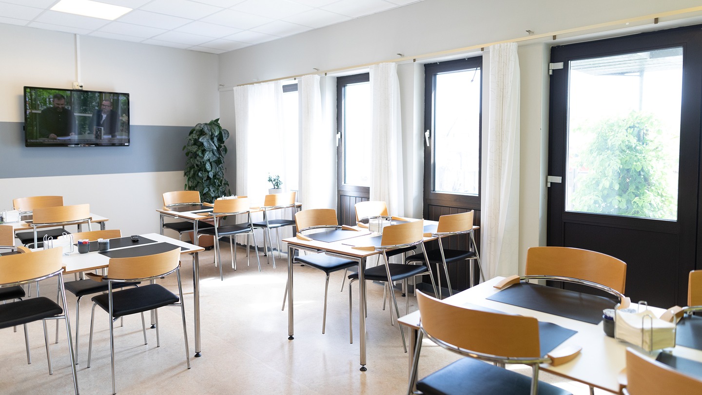 - Restaurant med betjent morgen,- frokost- og aftenbuffet med mulighed for køb af sodavand