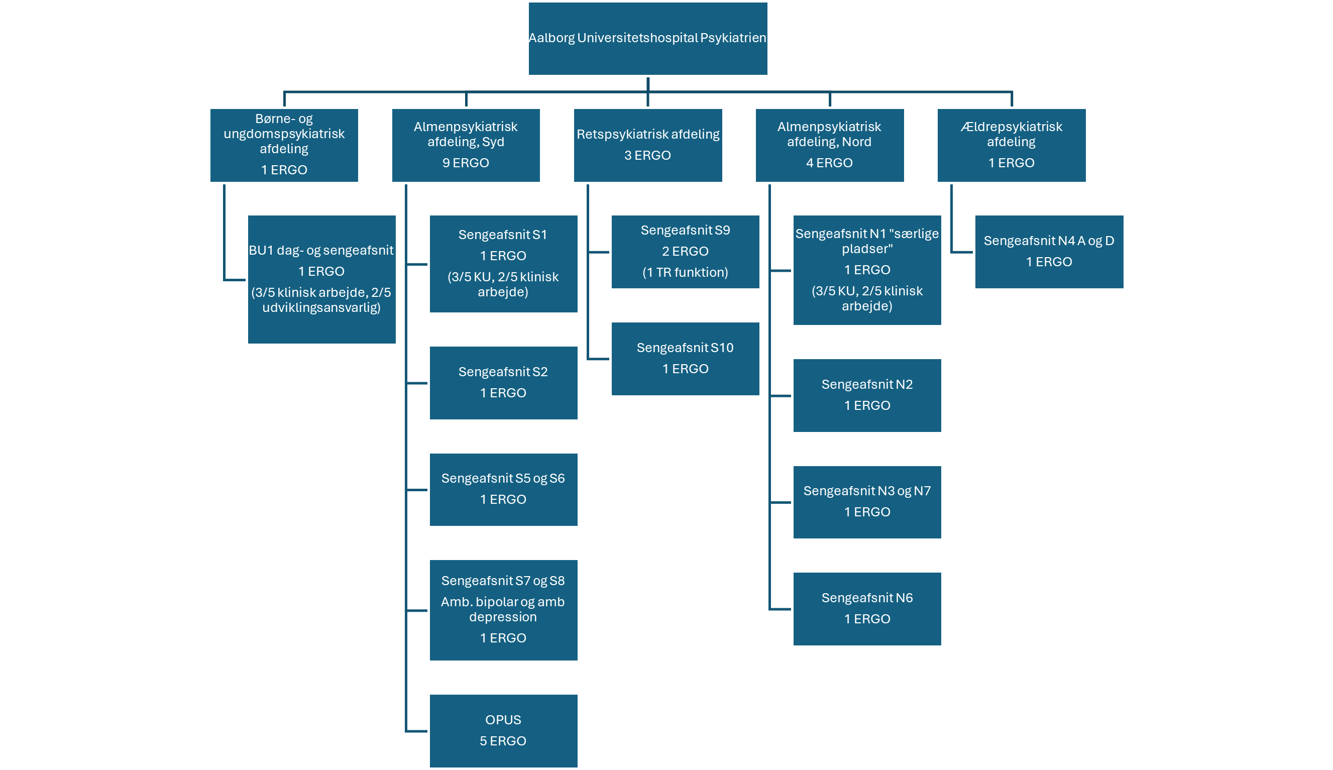 Nedenfor ses fordelingen af ergoterapeutstillinger, samt hvilke afsnit de betjener.